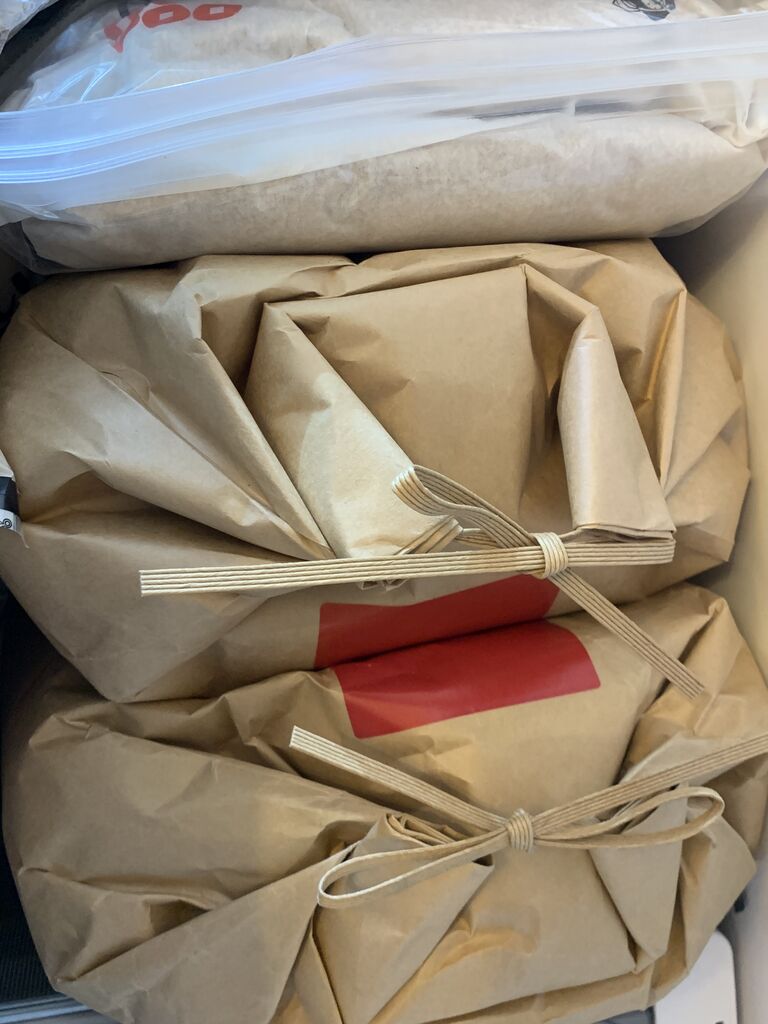 我が家の備蓄玄米です。セカンド冷蔵庫はほぼ玄米で埋まっています(笑)。
