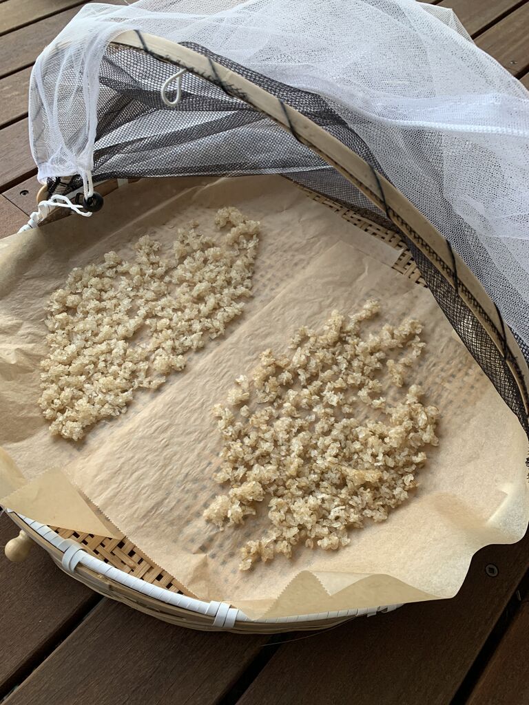と言っても、オーブンペーパーなどにごはんを広げて放っておくだけ。