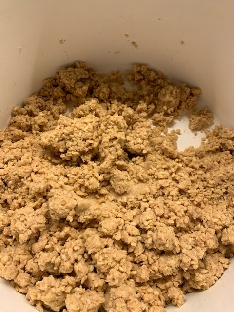 大きなボウルに米麹をほぐし、大豆+塩のペーストをまんべんなくまぜていきます。無心でこねこねできて楽しかった(^-^)