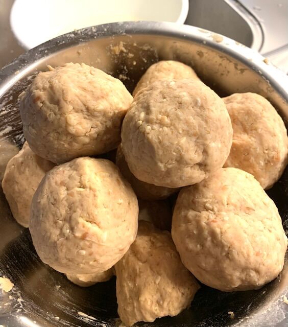 空気を抜くようにしてみそ玉を作ります。おいしゅうなれ、おいしゅうなれと心を込めて。子どもや孫がいたら、冬休みに一緒に作りたいと思う作業。